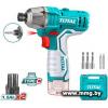5 днейTotal TIRLI12015 (с 2-мя АКБ, кейс)Винтоверт / питание: аккумуляторный, Li-ion, 2000 об/мин, 100 Н·м, напряжение аккумулятора: 12 В, ёмкость аккумулятор